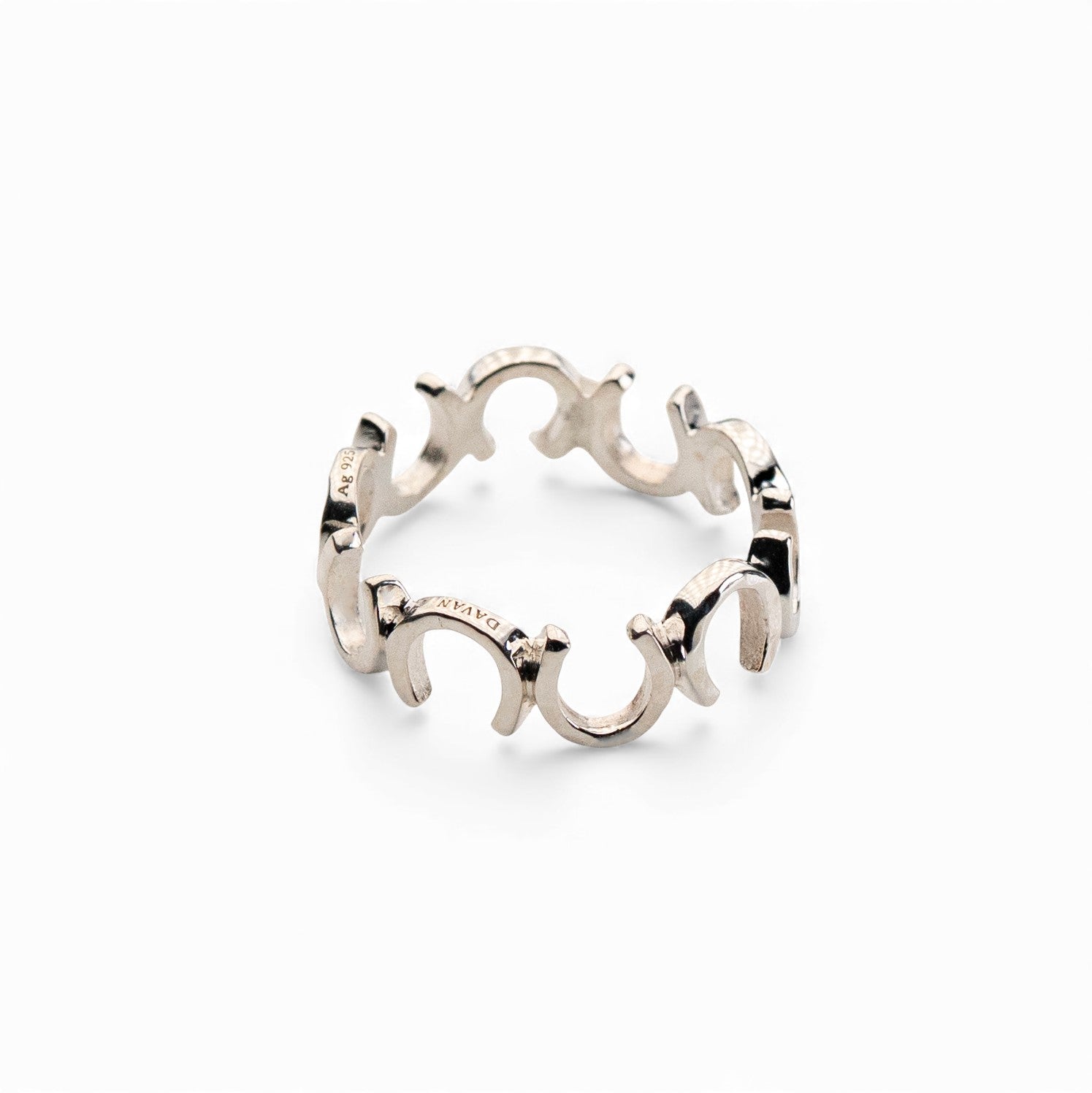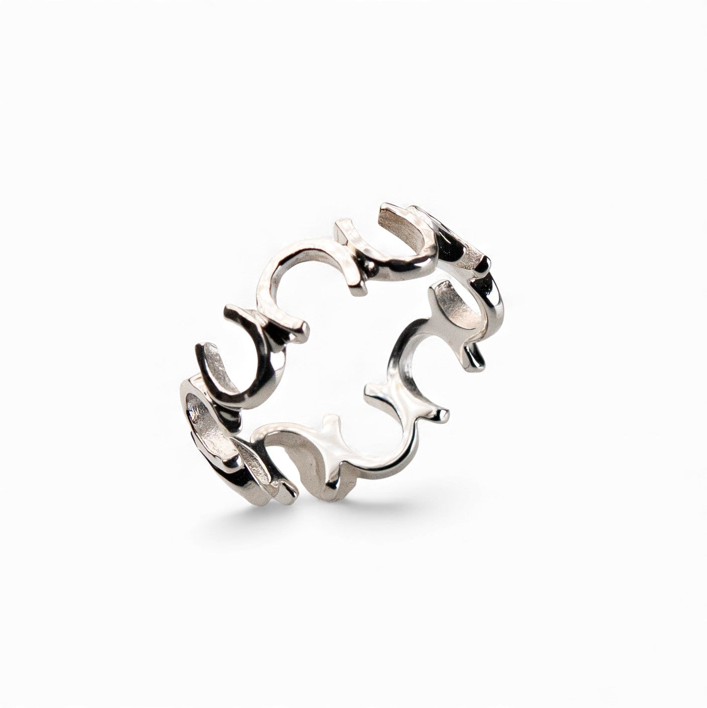 唯一無二の輝き 職人が一つひとつ丁寧に施した「槌目(つちめ)加工」は、大量生産品にはない温もりと、まるで水面のような柔らかな光の反射を生み出します。 想いを込めたエタニティ 「繁栄」と「守護」の願いが込められた馬蹄が途切れることなく続くデザインで、大切な人の幸せを願うギフトとしても最適です。